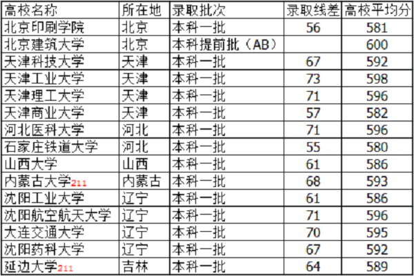 河北理科生考590分左右可以上北京印刷学院、北京建筑大学、天津科技大学。