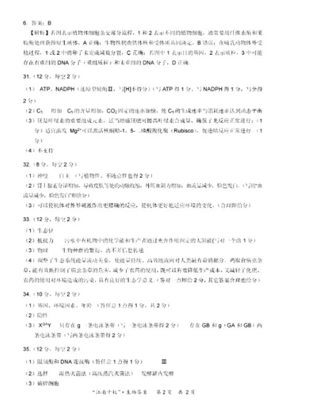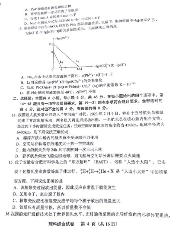 安徽2023江南十校联考理综试题及答案解析