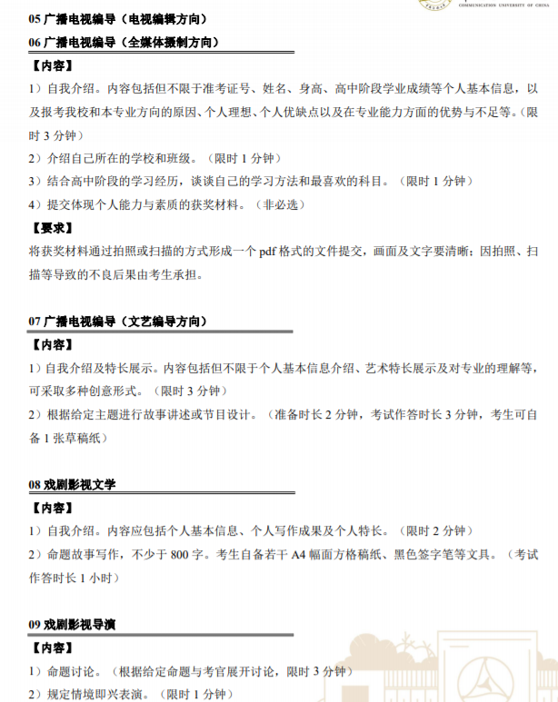 各专业(含招考方向)的具体考试时间届时将在中国传媒大学本科招生网发布,请考生密切关注。
