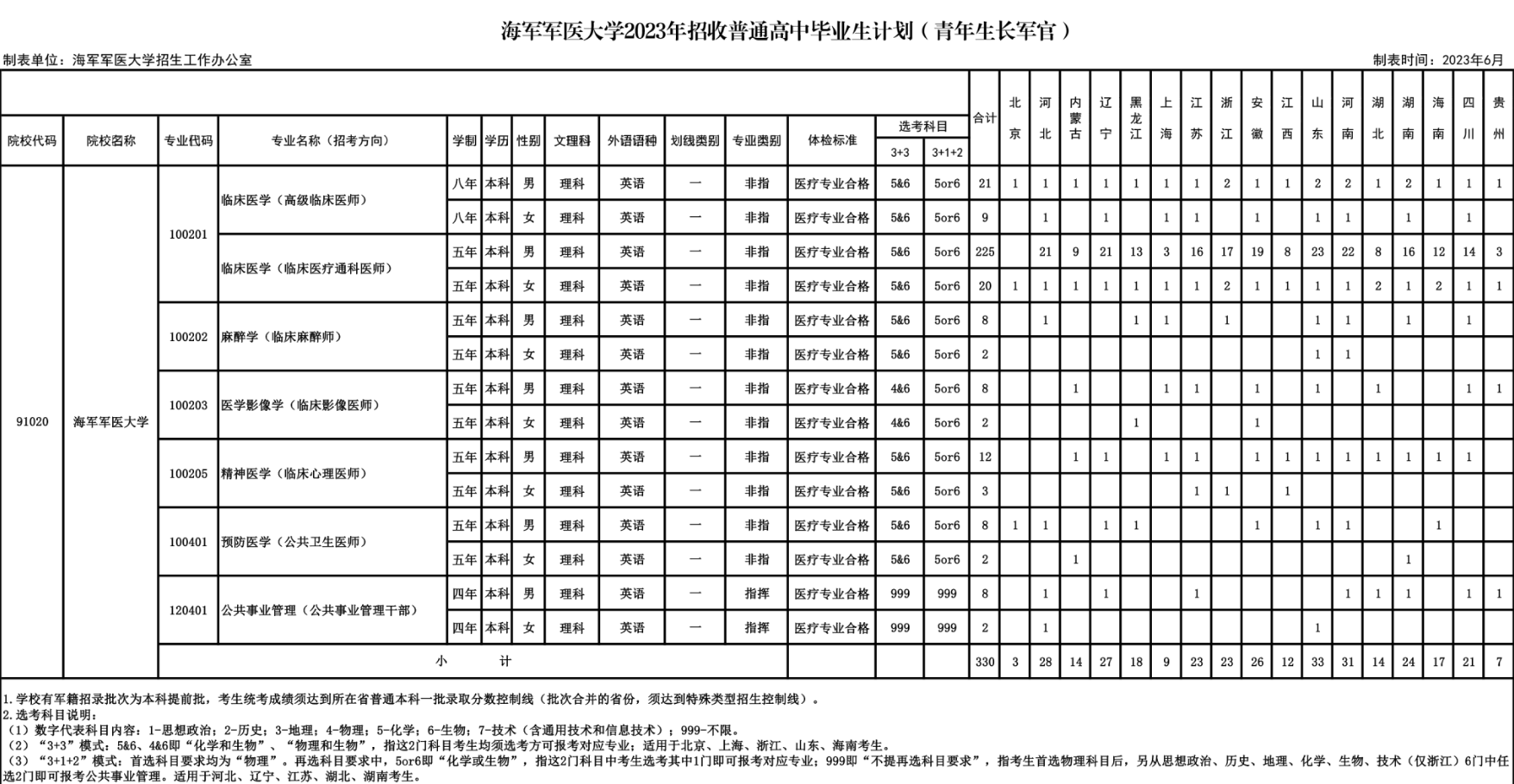2023海军军医大学招生计划及招生人数 各省都招什么专业