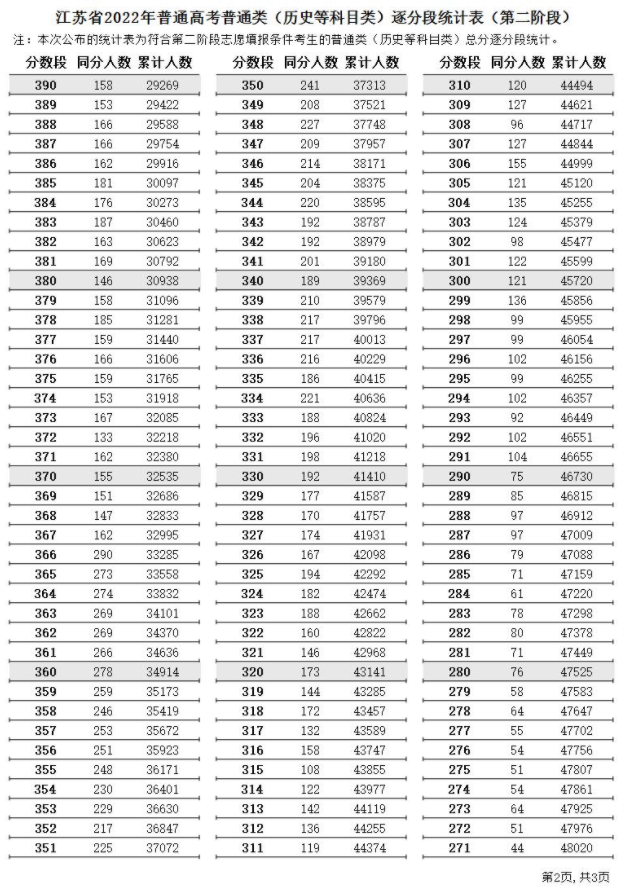 2022江苏高考第二阶段普通类一分一段表(历史) 成绩排名查询