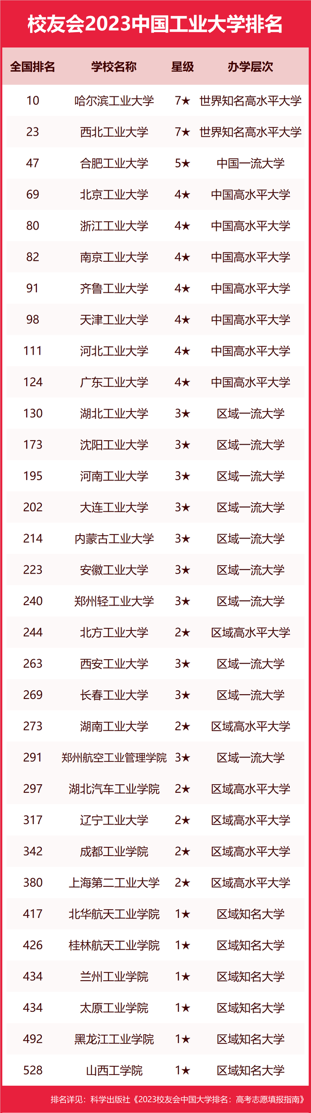校友会2023中国工业大学排名 最新工业大学排行榜