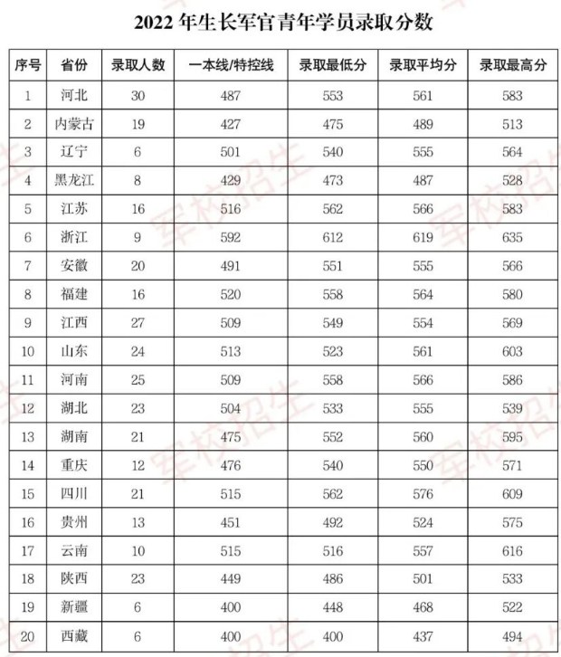 2022年陆军步兵学院在辽宁最低录取分数线是540分,在河北最低录取分数线是553分,在安徽最低录取分数线是551分。下文是小编整理了2022年陆军步兵学院各省录取分数线,欢迎大家阅读!
