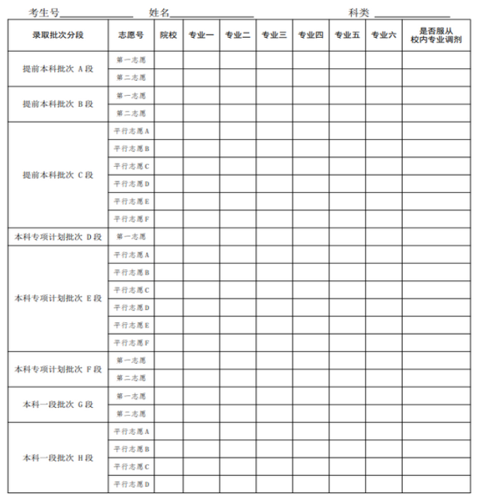 2023青海高考志愿填报样本模板 志愿表怎么填